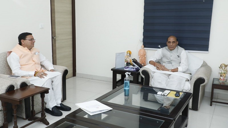 सीएम धामी ने केंद्रीय रक्षा मंत्री राजनाथ सिंह से मिलकर कई मुद्दों पर की चर्चा