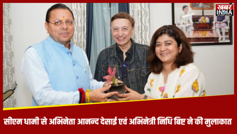 सीएम धामी से अभिनेता आनन्द देसाई एवं अभिनेत्री निधि बिष्ट ने की मुलाकात