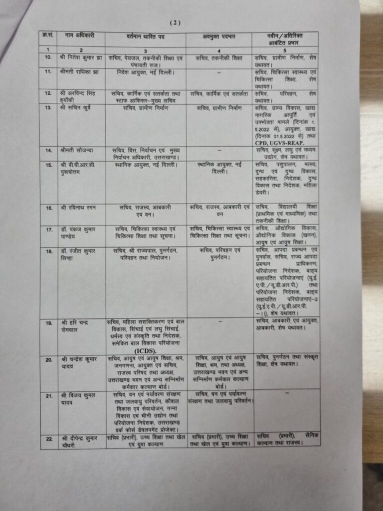 धामी सरकार के दूसरे कार्यकाल का पहला प्रशासनिक फेरबदल