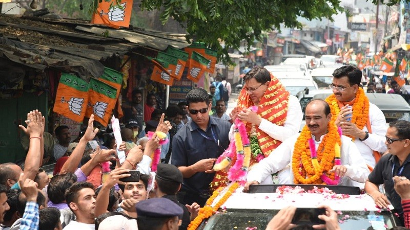 उपचुनाव की तैयारी: सीएम धामी ने निकाला रोड शो