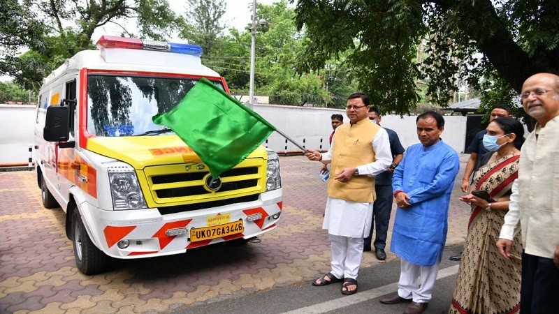 मुख्यमंत्री पुष्कर सिंह धामी ने एंबुलेंस को हरी झंडी दिखाकर किया रवाना