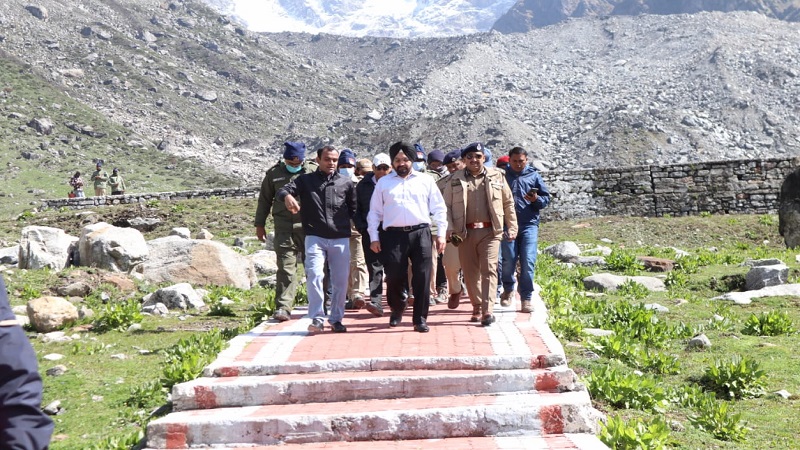 मुख्य सचिव ने केदारनाथ में चल रहे निर्माण कार्यों का स्थलीय निरीक्षण कर लिया जायजा