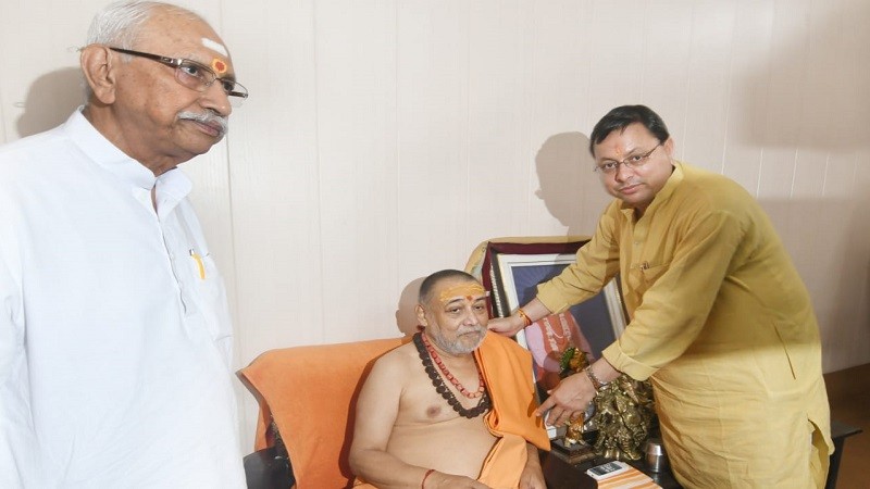 जगद्गुरु शंकराचार्य राजराजेश्वर से मिलकर सीएम धामी ने लिया आशीर्वाद