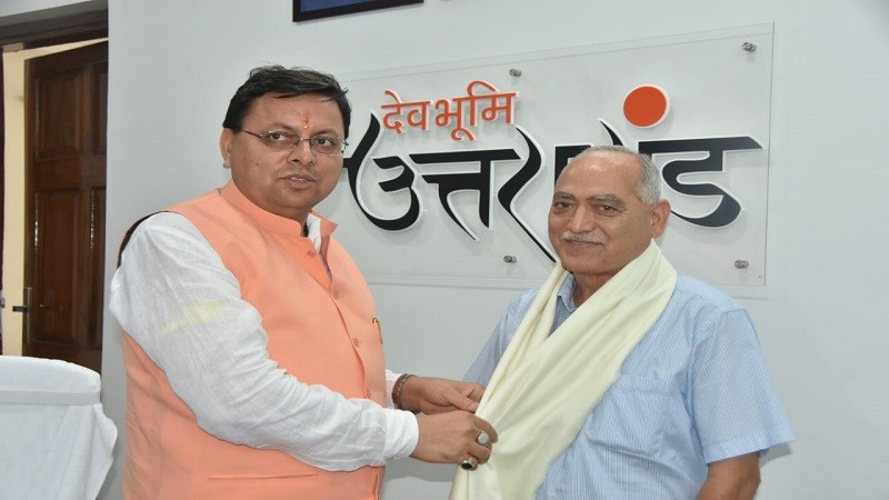 मुख्यमंत्री के मुख्य सुरक्षा अधिकारी के सेवानिवृत्त होने पर सीएम धामी ने शॉल भेंट कर किया सम्मानित