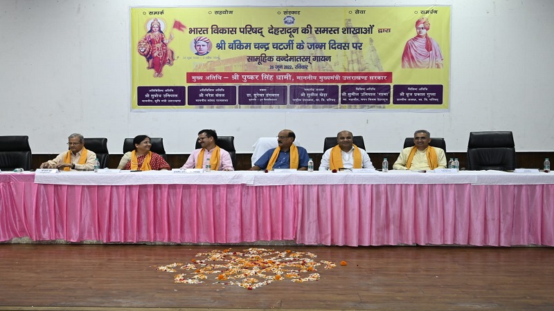 देहरादून, खबर न्यू इंडिया (न्यूज़ डेस्क): "भारत विकास परिषद" समाज में विभिन्न व्यवसायों व कार्यों में लगे श्रेष्ठ लोगों का एक राष्ट्रीय अराजनैतिक, निःस्वार्थ, समाजसेवी सांस्कृतिक संगठन है, गणतन्त्र दिवस 26 जनवरी, 2018 को पहली बार भारत विकास परिषद, देहरादून की सभी शाखाओं द्वारा 'सामुहिक वन्देमातरम गायन का आयोजन देहरादून मे अपनी एक पहचान बना चुका है। इसी श्रृंखला को आगे बढ़ाते हुए भारत विकास परिषद ने वन्देमातरम् के रचयिता श्री बकिंमचन्द्र चटर्जी के जन्म दिवस 26 जून पर श्री महन्त इन्द्रेश हास्पिटल से सम्बद्ध गुरु राम राय मेडिकल कालेज के आडिटोरियम मे सामूहिक वंदेमातरम गायन कार्यक्रम का आयोजित किया।
