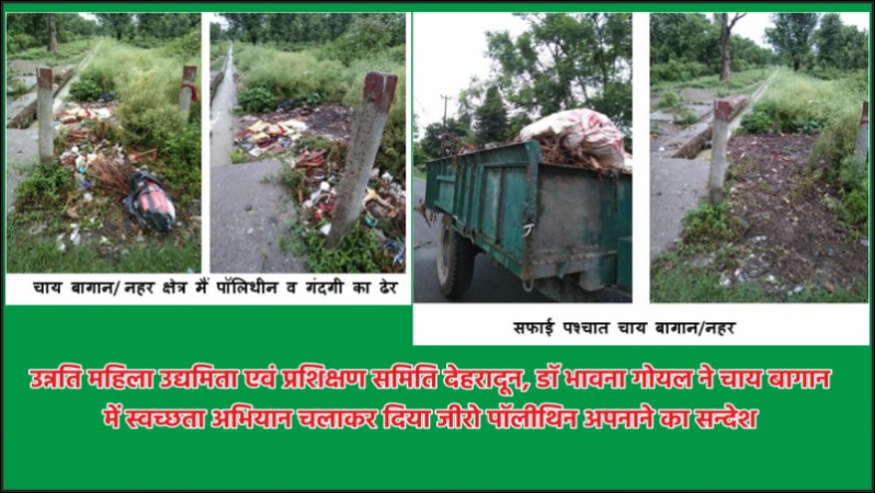 उन्नति महिला उद्यमिता एवं प्रशिक्षण समिति देहरदून, डॉ भावना गोयल ने चाय बगान में स्वच्छता अभियान चलाकर दिया जीरो पॉलीथिन अपनाने का सन्देश