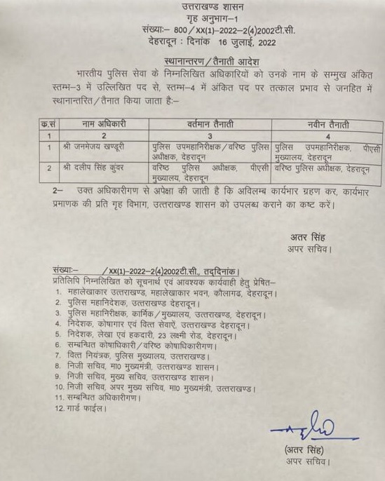 बड़ी खबर: बदले गए देहरादून के डीएम और एसएसपी