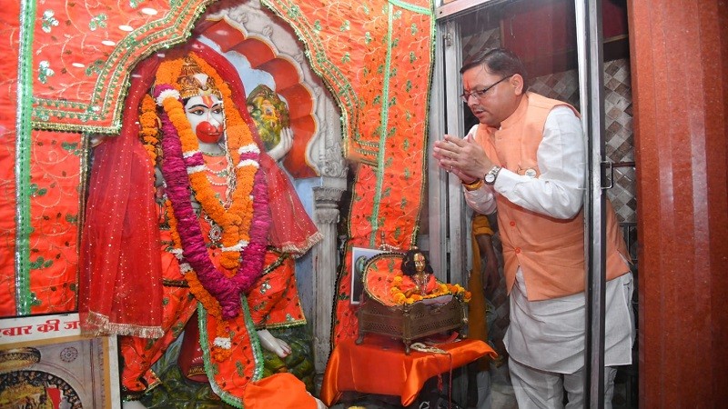 मुख्यमंत्री धामी ने हनुमान मंदिर में मत्था टेक कर बजरंगबली का लिया आशीर्वाद