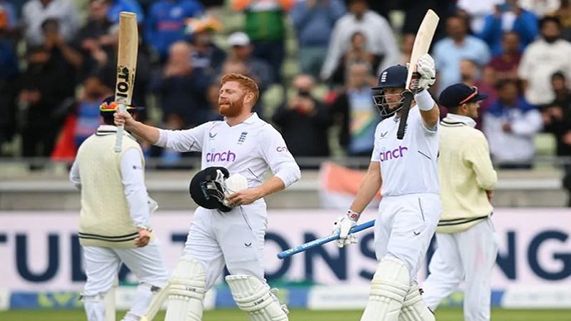 (स्पोर्ट्स डेस्क) । एजबेस्टन में मंगलवार को पांचवें टेस्ट के पांचवें दिन इंग्लैंड ने भारत पर सात विकेट से ऐतिहासिक जीत दर्ज की। जो रूट (142 नाबाद) और जॉनी बेयरस्टो (114 नाबाद) की 316 गेंदों में 269 रनों की अटूट साझेदारी की वजह से साथ ही मेजबान टीम ने सीरीज में 2-2 की बराबरी कर ली। भारत के 377 रनों के जवाब में इंग्लैंड ने 76.4 में तीन विकेट खोकर 378 रन बनाकर लक्ष्य को हासिल कर लिया। भारत की ओर से जसप्रीत बुमराह ने दो विकेट चटकाए। पांचवें दिन शुरुआती सत्र में इंग्लैंड ने 259/3 से आगे खेलना शुरू किया। रूट और बेयरस्टो ने चौथे दिन जहां खेलना छोड़ा था, वहीं से आज भी विस्फोटक अंदाज में खेलना जारी रखा। दोनों ने भारतीय तेज गेंदबाजों पर जमकर प्रहार किया और चौके और छक्के लगाते चले गए। इसी के साथ ही भारत और इंग्लैंड के बीच पांच मैचों की टेस्ट सीरीज से 2-2 ड्रॉ हो गई. टीम इंडिया 15 साल बाद इंग्लैंड की धरती पर टेस्ट सीरीज जीतने से चूक गई. भारत अगर बर्मिंघम टेस्ट मैच जीत लेता या फिर ड्रॉ भी करा लेता तो वह इस टेस्ट सीरीज को जीतकर इतिहास रच देता. साल 2007 में टीम इंडिया ने आखिरी बार इंग्लैंड की धरती पर 1-0 से टेस्ट सीरीज जीती थी.