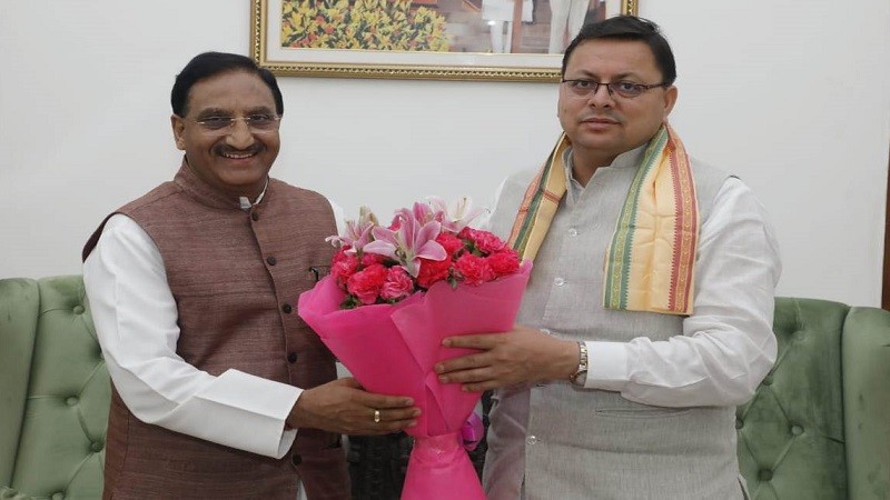 सीएम धामी ने सांसद डॉ रमेश पोखरियाल निशंक से की शिष्टाचार भेंट