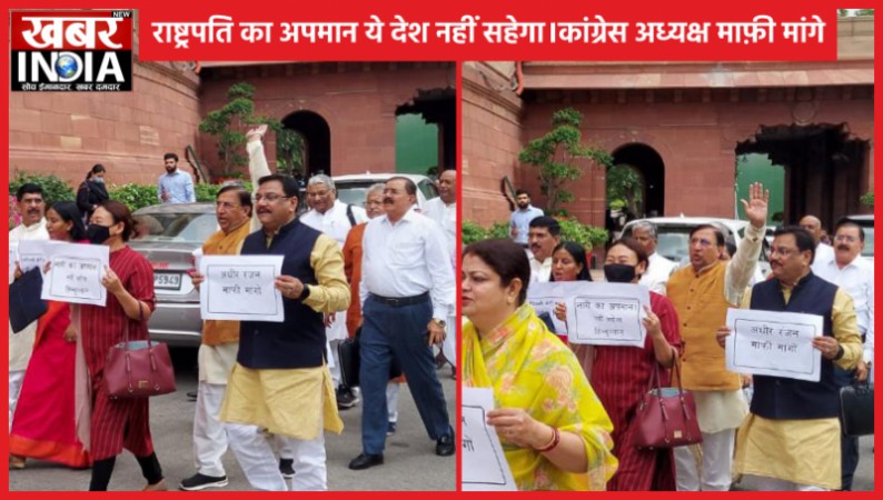 नई दिल्ली/देहरादून, खबर न्यू इंडिया (न्यूज़ डेस्क) : राज्य सभा सांसद नरेश बंसल ने कांग्रेस नेता अधीर रंजन चौधरी द्वारा देश की पहली महिला आदिवासी राष्ट्रपति महामहिम श्री मती द्रौपदी मुर्मू जी पर की गई लिंग भेदी टिप्पणी पर गहरी नाराजगी जताई है । उन्होंने आज संसद भवन नई दिल्ली में साथी सांसदो संग देश की पहली महिला आदिवासी महामहिम राष्ट्रपति के अपमान के विरोध में प्रदर्शन किया । सासंद बंसल ने कहा कि राष्ट्रपति का अपमान ये देश नहीं सहेगा। यह जीभ फिसलना नही राष्ट्रपति का कांग्रेस नेता अधीरंजन चौधरी द्वारा जानबूझकर किया अपमान था । उन्होंने कहा कि कांग्रेस अध्यक्ष सोनिया गाँधी को आदिवासी समाज और महिलाओं के अपमान पर पूरे देश से माफ़ी मांगनी चाहिए। उन्होंने इसे कांग्रेस की तुच्छ मानसिकता का परिचय बताया । सासंद बंसल ने विपक्ष पर निशाना साधते हुए कहा कि विपक्षी दलों के सांसदो द्वारा संसद न चलने देने विपक्ष का चर्चा से भागना है ।उन्होंने इसे लोकतंत्र का हनन करार दिया ।