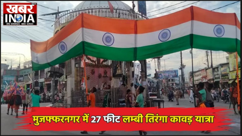 मुजफ्फरनगर: आकर्षण का केंद्र बनी 27 फीट लम्बी तिरंगा कावड़ यात्रा