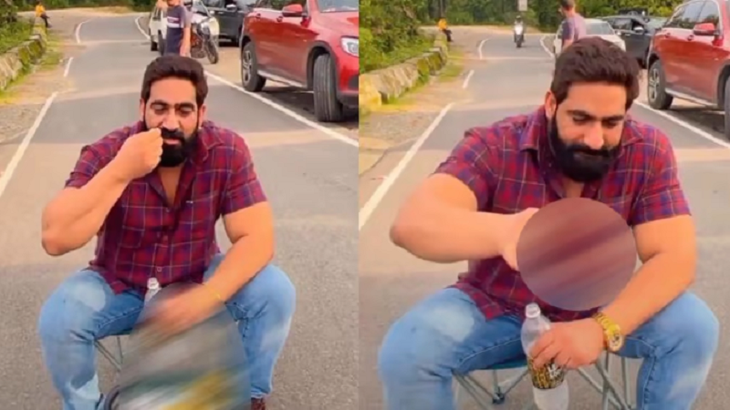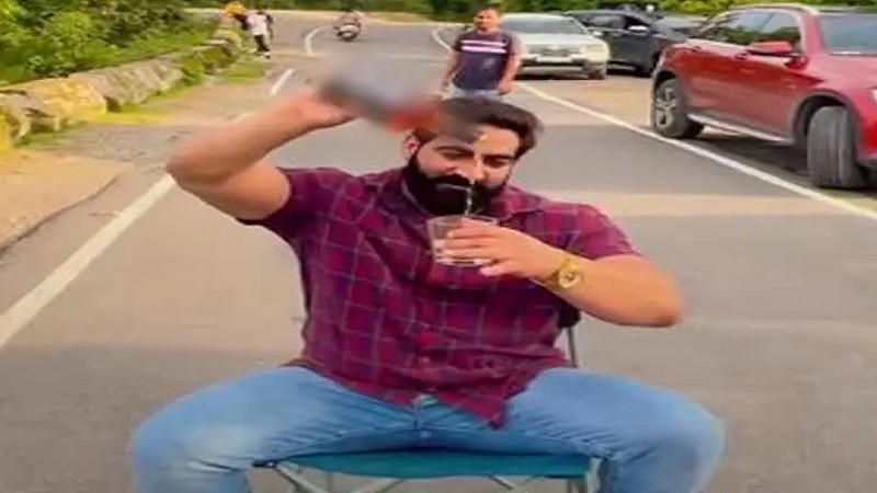 यूट्यूबर और शौकीन मिजाज हरियाणा के रईस बॉबी कटारिया का एक वीडियो वायरल हो रहा है जिसमें वो पहाड़ी क्षेत्र में बीच सड़क में कुर्सी स्टूल डालकर बड़ी शान से शराब पी रहा है। ना किसी दूसरे यात्री का डर है और ना ही किसी नियम कानून की परवाह। ये वायरल वीडियो म्युझिक सहित वायरल हो रहा है। जिसमें वो बीच सड़क में कुर्सी मेज लगाकर शराब पी रहा है। हरियाणा निवासी बॉबी कटारिया का बताया जा रहा है कि वो कुछ दिन पहले देहरादून की वादियों में घूमने आए थे। अब ये विडीओ वायरल होने पर सनसनी फैल गई है। पुलिस ने इसका संज्ञान लिया है।