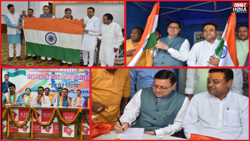 देहरादून, खबर न्यू इंडिया (न्यूज़ डेस्क): आज़ादी के 75 वर्ष पूरे होने के उपलक्ष्य में आजादी का अमृत महोत्सव के तहत 13 से 15 अगस्त तक ‘हर घर तिरंगा’ अभियान का आह्वान किया गया है। इस अभियान के जरिए सरकार की योजना है कि भारत के ‘हर घर तिरंगा’ लहराए. इसके लिए सरकार ने 20 करोड़ घरों का लक्ष्य तय किया है. सरकार की अपील है कि 13 से 15 अगस्त के बीच जनभागीदारी से 20 करोड़ से ज्यादा घरों पर तिरंगा फहराया जाए. इसमें सरकारी व निजी प्रतिष्ठान भी शामिल होंगे. इस अभियान को लेकर प्रशासन जोर-शोर से तैयारी कर रहा है. वही उत्तराखंड में भारतीय जनता पार्टी ने सोमवार से 'हर घर तिरंगा' अभियान की शुरुआत की थी. सोमवार से ही उत्तराखंड में भाजपा मुख्यालय पर राष्ट्रीय ध्वज तिरंगे को लेकर आवंटन की प्रक्रिया शुरू हो चुकी है. भारतीय जनता पार्टी द्वारा अपने कार्यकर्ताओं को यह तिरंगा निशुल्क नहीं बल्कि एक सामान्य शुल्क में उपलब्ध कराया जा रहा है. भारतीय जनता पार्टी ने घरों में लगने वाले इस तिरंगे का मूल्य ₹20 रखा है. वहीं अगर कोई कार्यकर्ता इसे डंडे सहित खरीदता है तो इसका मूल्य ₹25 होगा. पूरे प्रदेश भर में मौजूद 20 लाख परिवारों में से कम से कम 10 लाख परिवारों के घरों पर तिरंगा भारतीय जनता पार्टी लगाने जा रही है.