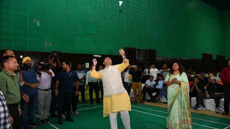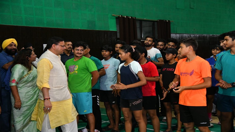 सीएम धामी ने बैडमिंटन खेल बढ़ाया खिलाड़ियों का मनोबल