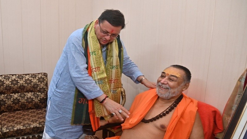 मुख्यमंत्री ने कनखल स्थित शंकराचार्य आश्रम में जगतगुरु शंकराचार्य राजराजेश्वराश्रम से शिष्टाचार भेंट की