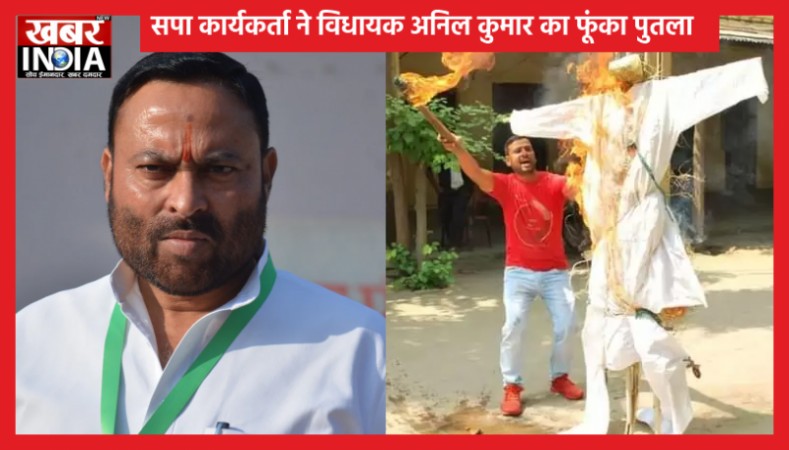 सपा कार्यकर्ता ने आरएलडी विधायक अनिल कुमार का फूंका पुतला