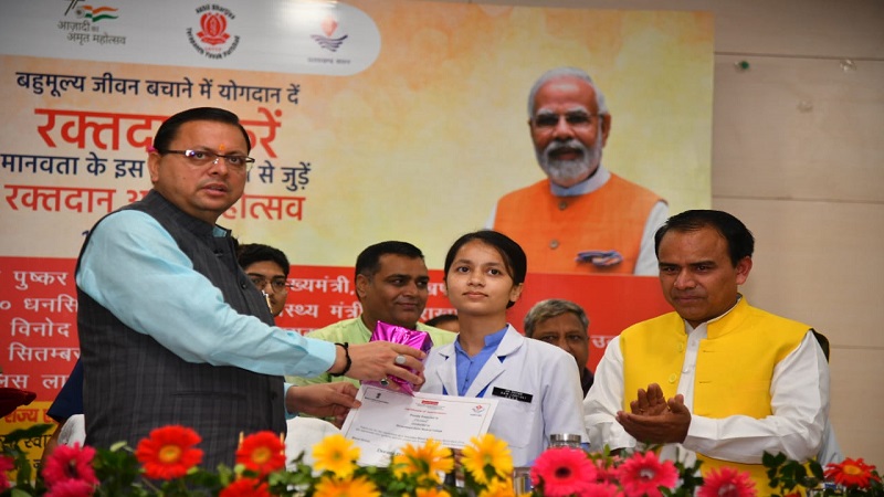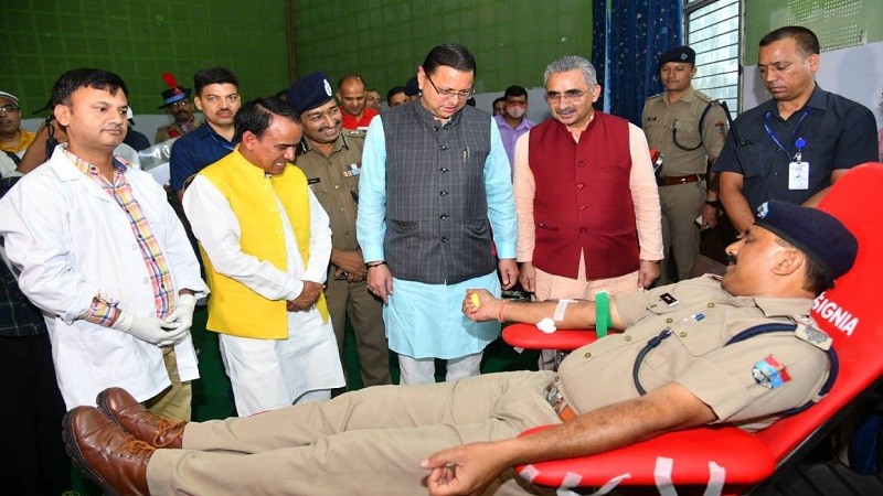 पीएम मोदी के जन्म दिवस पर पुलिस लाईन में आयोजित रक्तदान अमृत महोत्सव कार्यक्रम में सीएम धामी हुए शामिल
