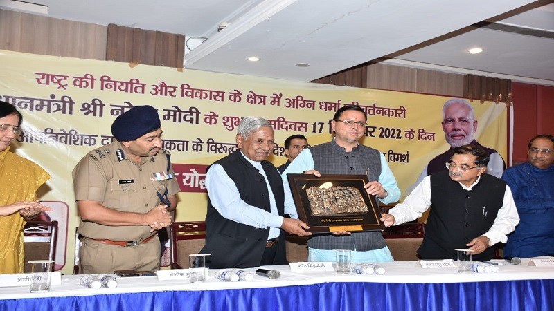 देहरादून, खबर न्यू इंडिया (न्यूज़ डेस्क) : मुख्यमंत्री पुष्कर सिंह धामी ने शनिवार को राजपुर रोड स्थित होटल में प्रधानमंत्री नरेन्द्र मोदी साहित्य प्रदर्शनी का शुभारम्भ किया। उन्होंने प्रधानमंत्री नरेन्द्र मोदी के जन्मदिन के अवसर पर औपनिवेशिक दास मानसिकता के विरूद्ध बौद्धिक विमर्श कार्यक्रम को भी सम्बोधित किया। उन्होंने कहा कि औपनिवेशिक दास मानसिकता एवं गुलामी के प्रतीकों को मिटाने का कार्य प्रधानमंत्री श्री मोदी के कार्यकाल में हो रहा है। मुख्यमंत्री ने कहा कि प्रधानमंत्री का उत्तराखण्ड से कर्म एवं मर्म का रिश्ता है। उत्तराखण्ड के प्रति उनका लगाव सर्वविदित है। मुख्यमंत्री ने कहा कि नरेन्द्र मोदी के प्रधानमंत्री बनने के बाद देश और देशवासियों में आशा, विश्वास और नई ऊर्जा का संचार हुआ है। उनके नेतृत्व में देश हर क्षेत्र में तेजी से प्रगति कर रहा है। वैश्विक स्तर पर भारत का मान, सम्मान एवं स्वाभिमान बढ़ा है। देश में नई कार्य संस्कृति की शुरुआत हुई है। समरस, समर्थ एवं शक्तिशाली भारत की पहचान देश व दुनिया में हुई है।