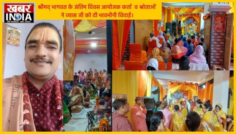 श्रीमद् भागवत के अंतिम दिवस आयोजक कर्ता व श्रोताओं ने व्यास जी को दी भावभीनी विदाई