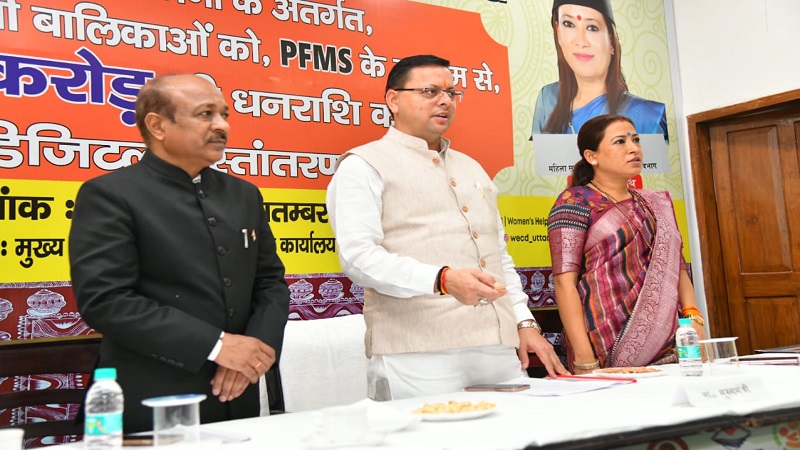 मुख्यमंत्री पुष्कर सिंह धामी ने सभी को शारदीय नवरात्र की शुभकामनाएं देते हुए कहा कि इस शुभ अवसर पर प्रदेश की बेटियों को धनराशि हस्तांतरण कर अपने को सौभाग्यशाली महसूस कर रहा हूं, उन्होंने कहा हमारी सरकार प्रदेश की प्रत्येक बालिकाओं के भविष्य को उत्कृष्ट, उज्जवल बनाने हेतु संकल्पित है, हमारी सरकार के संकल्प को पूर्ण करने में बेटियों का अहम योगदान है, आज प्रत्येक क्षेत्र में बेटियां एवं महिलाएं पुरुषों से अच्छा प्रदर्शन कर रही हैं, सरकार द्वारा लिए गए प्रदेश को प्रत्येक क्षेत्र में आगे ले जाने के संकल्प में बेटियों का अहम योगदान रहेगा, उन्होंने कहा बेटियों के योगदान के बिना यह संकल्प कभी पूरा नहीं हो सकता, आज बेटियां मेहनत, परिश्रम के बल पर सफलता हासिल कर रही हैं, उन्होंने कहा हमें अपने जीवन में विकल्प रहित संकल्प के मंत्र के साथ अपने सपनों को साकार करने में जुट जाना चाहिए, समय बहुत बहुमूल्य होता है जिसका सदुपयोग करना ही हमारे जीवन को सफल एवं सार्थक बनाएगा। मनुष्य के अंदर उसकी आत्मा में भगवान का वास होता है, हमें अपने अंदर की काबिलियत एवं अंदरूनी शक्ति को पहचानना बहुत जरूरी है। स्वयं की मदद करने वाले मनुष्य की हमेशा भगवान मदद करते हैं, उन्होंने कहा बड़ों का आदर एवं जिंदगी में अनुशासन का पालन करने वाला व्यक्ति हमेशा सफलता की ओर बढ़ता है।