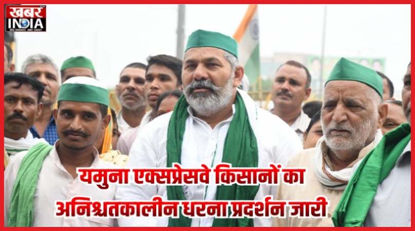 यमुना एक्सप्रेसवे किसानों का अनिश्चतकालीन धरना प्रदर्शन जारी, राकेश टिकैत भी हुए शामिल