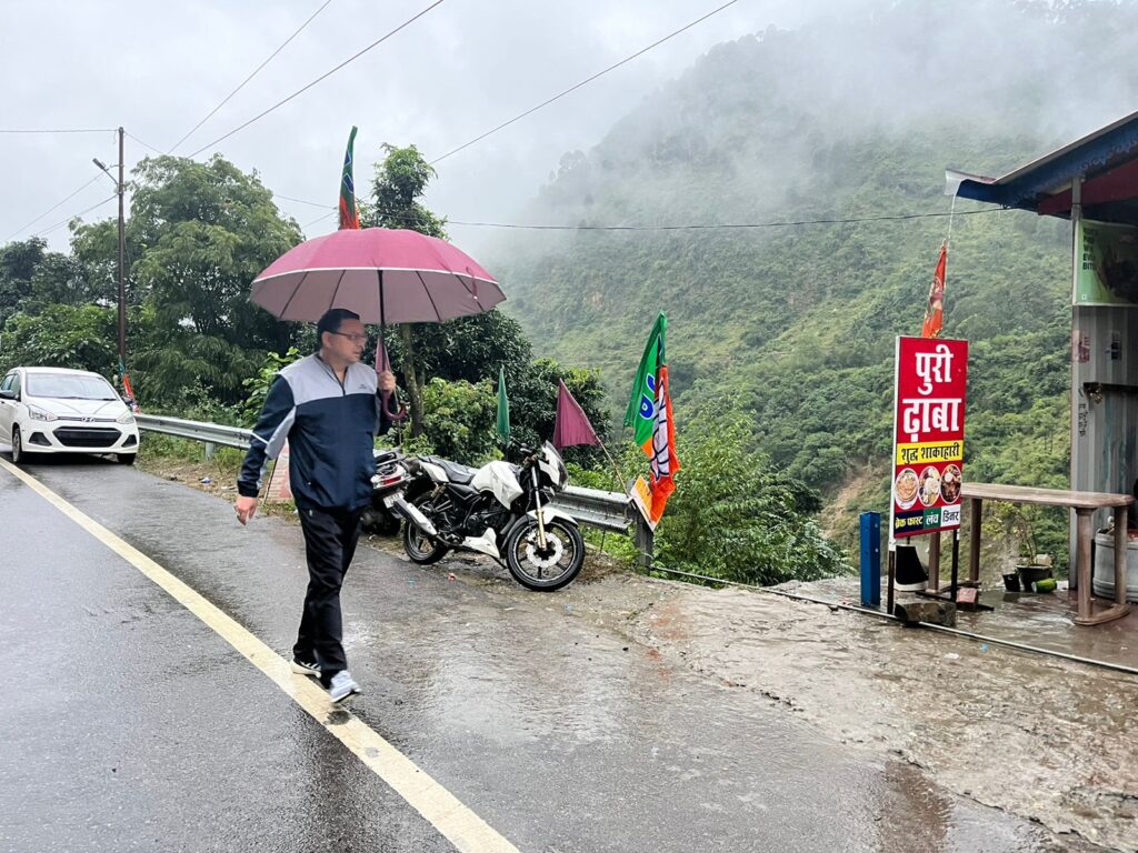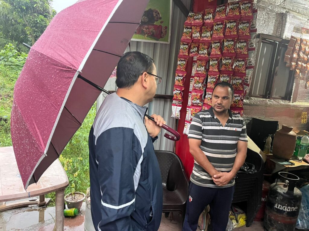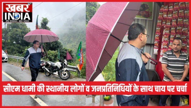 धाकड़ धामी का धाकड़ अंदाज़, भारी बारिश के बावजूद स्थानीय लोगों के साथ चाय पर चर्चा
