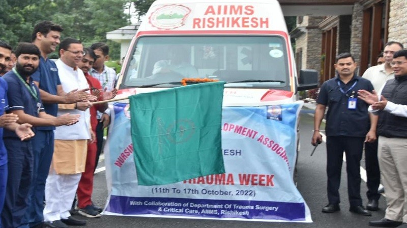 एम्स ऋषिकेश के ट्रामा रथ का मुख्यमंत्री पुष्कर सिंह धामी ने किया फ्लैग ऑफ