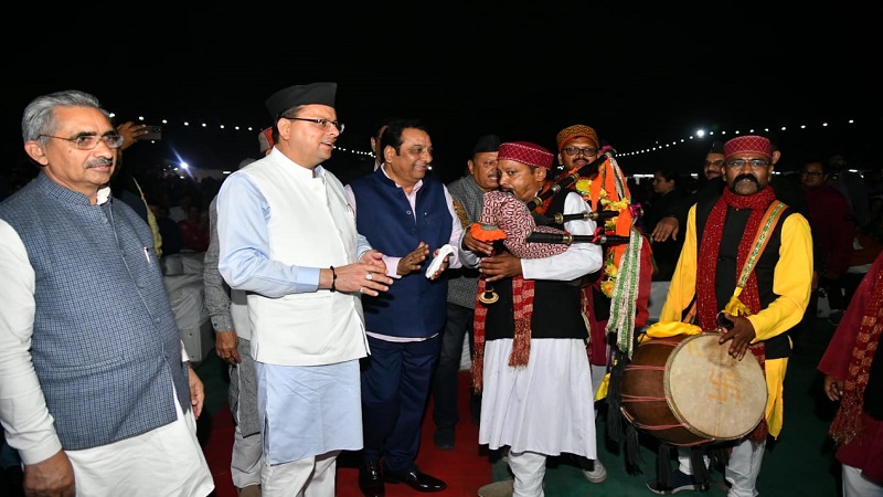 मुख्यमंत्री ने कहा कि प्रधानमंत्री नरेन्द्र मोदी के आह्वान पर पूरे देश में आजादी का अमृत महोत्सव मनाया जा रहा है। यह अमृत महोत्सव आजादी के पहले और आजादी के बाद देश के लिये अपना योगदान देने वालों के सम्मान के साथ देश ने जो उपलब्धियां हासिल की उनका स्मरण करने का महोत्सव है। अब हम आजादी की शताब्दी की ओर बढ़ रहे हैं। उन्होंने कहा कि आज प्रधानमंत्री नरेन्द्र मोदी के नेतृत्व में उत्तराखण्ड की संस्कृति के विकास के लिए अनेक योजनायें चलाई जा रही है। आपदा के बाद केदारनाथ धाम का पुनर्निर्माण हुआ है, संपूर्ण परिसर में विभिन्न विकास कार्यों का निर्माण कार्य चल रहा है, जिसे 2023 के अंत तक कर पुरा कर लिया जाएगा, लगातार नया भव्य और दिव्य केदार बन रहा है। बद्रीनाथ धाम के भव्य निर्माण हेतु मास्टर प्लान बन कर तैयार हो गया है। हाल ही में प्रधानमंत्री ने उनके द्वारा माणा को भारत के अन्तिम गांव की बजाय देश का पहला गांव कहे जाने पर मुहर लगाते हुए कहा कि अब तो उनके लिये भी सीमाओ पर बसा हर गांव देश का पहला गांव ही है। यह हमारे सीमान्त क्षेत्र के निवासियों के भी सम्मान की बात है।
