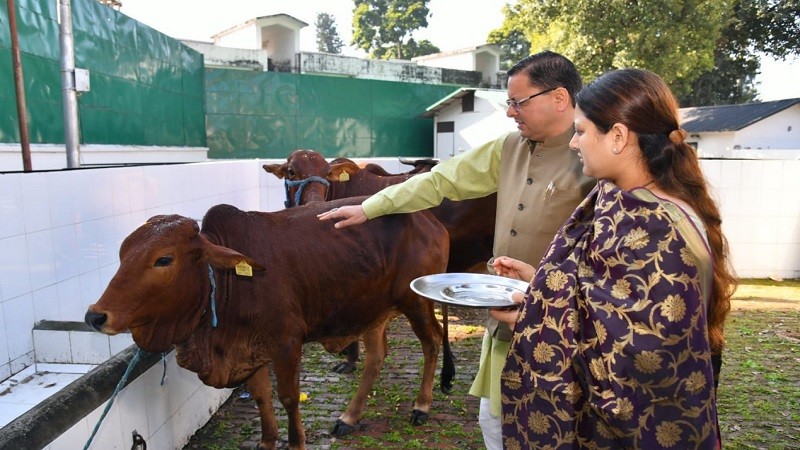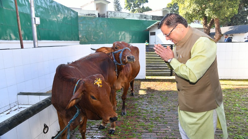 सीएम धामी ने मुख्यमंत्री आवास में गायों की पूजा कर उत्तराखंडवासियों की सुख- समृद्धि एवं खुशहाली की कामना की
