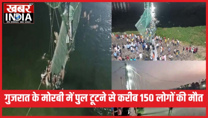 गुजरात के मोरबी में मच्छु नदी पर बना ब्रिज गिरने से करीब 150 लोगों की मौत