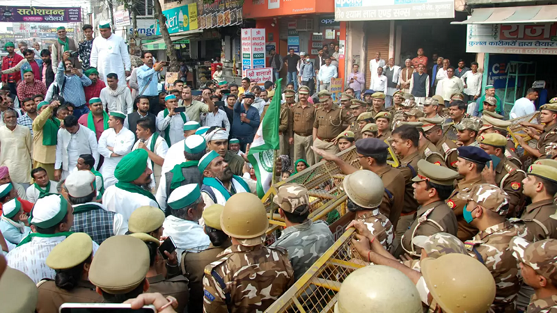 भाकियू सुप्रीमो ने कहा कि यहां कई कई लाख लोगों के धरने हुए है। भारतीय किसान यूनियन के युवा जिलाध्यक्ष कपिल सोम के खिलाफ रतनपुरी थाने में मुकदमा दर्ज होने के बाद जेल भेजे जाने व छपार थाने में एक भाकियू कार्यकर्ता के खिलाफ मुकदमा दर्ज होने पर बीते दिनों भाकियू नेताओं ने महावीर चौक स्थित भाकियू कार्यालय पर एक पंचायत कर चेतावनी दी थी कि 14 नवम्बर तक मुकदमे वापस नहीं हुए, तो एसएसपी ऑफिस पर डेरा डाला जायेगा। पुलिस द्वारा मुकदमे वापस न लेने पर आज भाकियू कार्यकर्ताओं ने जिलाध्यक्ष योगेश शर्मा, मांगेराम त्यागी व शक्ति सिंह के नेतृत्व में एसएसपी ऑफिस के घेराव का प्रयास किया और शहर में सैकडों ट्रैक्टरों का रैला सडकों पर दिखाई दिया। इस दौरान एसपी सिटी अर्पित विजयवर्गीय, सिटी मजिस्ट्रेट अनूप कुमार, सीओ सिटी आयुष विक्रम सिंह भी भारी पुलिस फोर्स के साथ मौके पर मौजूद रहे और कई बार भाकियू के वरिष्ठ पदाधिकारियों को समझाने का प्रयास किया, लेकिन वह अपनी मांगों पर अडे रहे। अपराह्न लगभग 4 बजे भाकियू अध्यक्ष चौधरी नरेश टिकैत भी धरना स्थल पर किसानों के बीच पहुंच गये, जिस पर माहौल गरमा गया और भाकियू कार्यकर्ता भी जोश में आ गये, जिससे एक बार फिर पुलिस प्रशासन से टकराव के आसार बन गये, लेकिन भाकियू अध्यक्ष चौधरी नरेश टिकैत ने कार्यकर्ताओं को संयमित रहकर अपनी बात कहने की सलाह दी.
