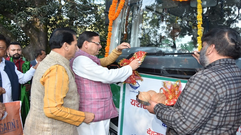 सीएम धामी ने किया 10 इलैक्ट्रिक बसों का शुभारंभ, आईएसबीटी से मालदेवता और आईएसबीटी से सहसपुर रोड चलेंगी इलैक्ट्रिक बसें