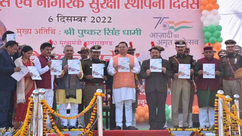 देहरादून, खबर न्यू इंडिया (न्यूज़ डेस्क) : मंगलवार को होमगार्डस एवं नागरिक सुरक्षा के स्थापना दिवस कार्यक्रम में मुख्यमंत्री पुष्कर सिंह धामी ने बतौर मुख्य अतिथि प्रतिभाग किया। इस अवसर पर उन्होंने रैतिक परेड का निरीक्षण किया एवं होमगार्डस एवं नागरिक सुरक्षा की स्मारिका का विमोचन किया। होमगार्ड जवानों के मानसिक स्वास्थ्य एवं अन्य समस्याओं के लिए बनाये गये एप ‘पहल’ का शुभारंभ भी मुख्यमंत्री द्वारा किया गया। मुख्यमंत्री ने इस अवसर पर सेवा पृथक होमगार्ड कुन्ती देवी को होमगार्ड कल्याण कोष से एक लाख रुपये का चेक एवं ड्यूटी के दौरान मृत होमगार्ड जवान तिलक राज मौर्य की पत्नी प्रीति को होमगार्ड कल्याण कोष से 02 लाख रुपये का चेक प्रदान किया। केन्द्र सरकार द्वारा कुमाऊँ कमाण्डेन्ट, होमगार्डस ललित मोहन जोशी को सराहनीय सेवाओं के लिए गृह रक्षक एवं नागरिक सुरक्षा सम्मान स्वीकृत किया गया। मुख्यमंत्री द्वारा ललित मोहन जोशी को यह सम्मान प्रदान किया गया। विभिन्न क्षेत्रों में सराहनीय कार्य करने वाले जवानों को मुख्यमंत्री द्वारा प्रशंसा प्रमाण पत्र भी प्रदान किये गये।