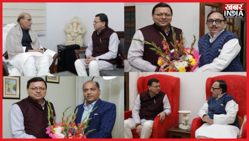 देहरादून, खबर न्यू इंडिया (न्यूज़ डेस्क): मुख्यमंत्री पुष्कर सिंह धामी ने बुधवार को नई दिल्ली में केंद्रीय रक्षा मंत्री राजनाथ सिंह से उनके आवास पर शिष्टाचार भेंट की, इस दौरान दोनों के बीच में कई महत्वपूर्ण मुद्दों पर चर्चा हुई, वही इसी दौरान मुख्यमंत्री पुष्कर सिंह धामी ने नई दिल्ली स्थित हिमाचल भवन में हिमाचल के पूर्व मुख्यमंत्री जय राम ठाकुर से शिष्टाचार भेंट की। मुख्यमंत्री पुष्कर सिंह धामी ने केंद्रीय मंत्री, भारी उद्योग मंत्रालय डॉ. महेन्द्र नाथ पाण्डेय से मुलाकात कर उत्तराखंड में औद्योगिक विकास के लिये मिल रहे केंद्र सरकार के सहयोग के लिए आभार व्यक्त किया।