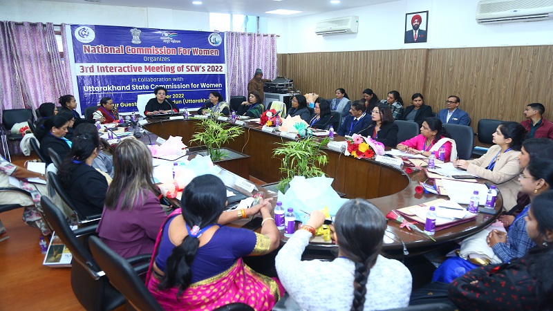 देहरादून, खबर न्यू इंडिया (न्यूज़ डेस्क) : देवभूमि उत्तराखण्ड की राजधानी देहरादून में राष्ट्रीय महिला आयोग की ओर से उत्तराखंड राज्य महिला आयोग के सहयोग द्वारा वर्ष 2022 की तृतीय संवादात्मक बैठक का आयोजन किया गया। बैठक में विभिन्न राज्यों से महिला आयोग की अध्यक्ष, उपाध्यक्ष, आयोग के सदस्य तथा सदस्य सचिव उपस्थित रहे । राष्ट्रीय महिला आयोग द्वारा आयोजित इस बैठक में कई अहम बिंदुओं पर चर्चा गई। आयोग द्वारा उक्त बैठक में महिलाओं के कौशल विकास को बढ़ाने को लेकर, ट्रांसजेंडर की स्तिथि को समझने व उनके लिए बेहतर व्यवस्था को लेकर, वेश्यावृत्ति से उबर कर आई पीड़िताओं की दुर्दशा को समझकर उनके लिए स्वाधार गृह और पीड़िता के लिए हम क्या कर सकते हैं, मातृत्व लाभ तथा कैरियर के साथ मातृत्व, जेलो में कैद महिला कैदियों की स्थिति और उनके लिए निशुल्क गुणवत्तापूर्ण कानूनी सहायता हो जैसे महिलाओं से संबंधित विभिन्न विषयों पर चर्चा हुई।