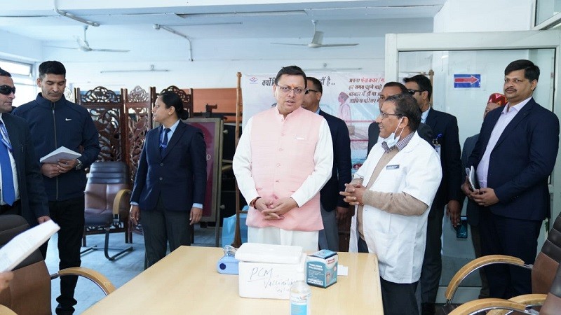सीएम धामी ने सचिवालय पहुंचकर बूस्टर डोज के लिए लगाए गए कैम्प का लिया जायज़ा