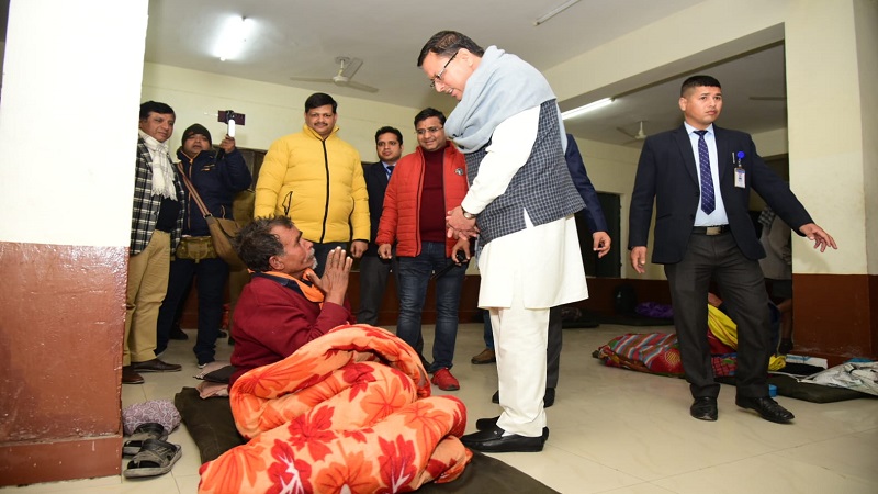 शनिवार देर सांय मुख्यमंत्री पुष्कर सिंह धामी ने दून अस्पताल सहित देहरादून के विभिन्न स्थानों पर ज़रूरतमंदों को कम्बल वितरित किये। मुख्यमंत्री ने घंटाघर के समीप स्थित रैन बसेरे व अन्य का भी औचक निरीक्षण किया। इस दौरान उन्होंने रैन बसेरों में रुके लोगों से मुलाकात की और उनका हाल-चाल जाना। मुख्यमंत्री ने रैन बसेरों की स्थिति की भी जानकारी ली।