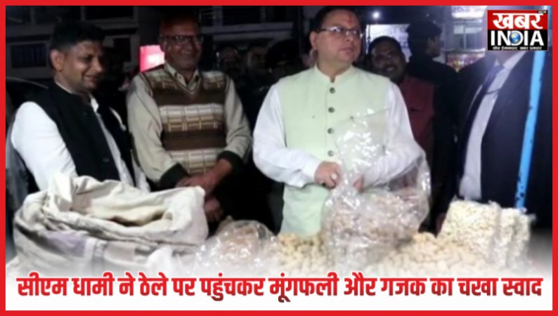 सीएम धामी ने ठेले पर पहुंचकर मूंगफली और गजक का चखा स्वाद