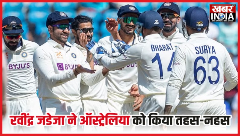 टीम इंडिया के धुरंधर ऑलराउंडर रवींद्र जडेजा ने अपनी कातिलाना लेफ्ट आर्म स्पिन गेंदबाजी से कहर मचाते हुए नागपुर में ऑस्ट्रेलियाई टीम को तहस-नहस कर दिया है. ऑलराउंडर रवींद्र जडेजा ने 5 महीने बाद टीम इंडिया में वापसी करते ही अपना जलवा दिखाते हुए ऑस्ट्रेलिया के खिलाफ नागपुर टेस्ट मैच में 5 विकेट्स चटका दिए. पहले दिन का खेल पूरी तरह से भारतीय टीम के नाम रहा. टीम ने पहले गेंदबाज़ी करते हुए कंगारू टीम को 177 रनों पर ऑलआउट दिया. इसमें भारतीय स्टार स्पिनर रवींद्र जडेजा ने 22 ओवर में 47 रन देकर 5 विकेट अपने नाम किए. उन्होंने मार्नस लाबुशेन, स्टीव स्मिथ, मैट रेनशॉ, पीटर हैंड्सकॉम्ब और मर्फी को चलता किया. इसके अलावा आर अश्विन ने 15.5 ओवर में 42 रन खर्च कर 3 विकेट अपने नाम किए. वहीं, मोहम्मद सिराज और मोहम्मद शमी ने 1-1 विकेट चटकाया.