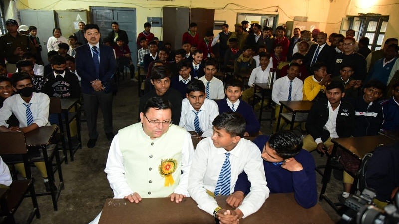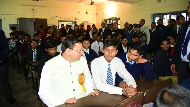 थारू राजकीय इण्टर कॉलेज पहुंचे सीएम धामी, बच्चों के बीच स्कूली दिनों को याद कर हुए भावुक