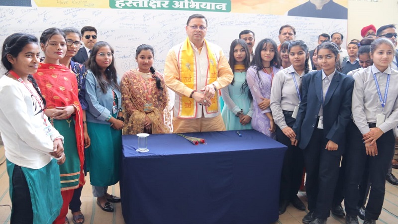 Cm Dhami: नकल विरोधी कानून पर आयोजित हस्ताक्षर अभियान में शामिल हुए सीएम धामी, छात्रों से किया संवाद