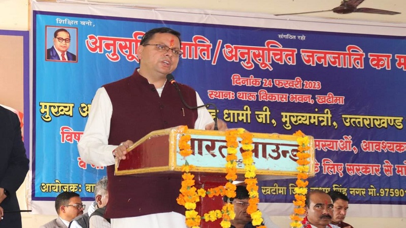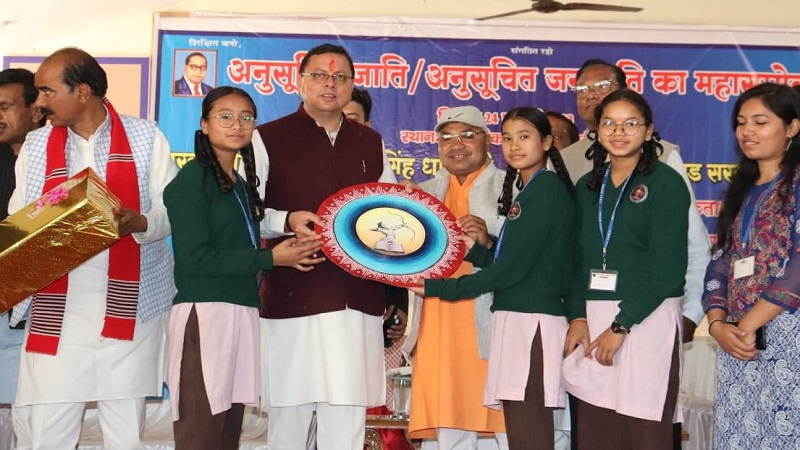 मुख्यमंत्री ने कहा कि प्रधानमंत्री मोदी ने जहां एक ओर उज्ज्वला गैस कनेक्शन योजना में गरीबों, शोषितों, वंचितों, आदिवासियों और दलितों को प्राथमिकता दी वहीं आयुष्मान योजना द्वारा इस वर्ग का मुफ्त इलाज सुनिश्चित किया । उन्होंने कहा कि आज 50 प्रतिशत आदिवासी आबादी वाले क्षेत्र में एकलव्य स्कूल खोले जा रहे हैं। सरकार के प्रयासों का ही परिणाम है कि एक और जहां कालसी, बाजपुर एवं खटीमा में केंद्रीय जनजातीय कार्य मंत्रालय भारत सरकार द्वारा एकलव्य आदर्श आवासीय विद्यालय का संचालन किया जा रहा है वहीं दूसरी और ग्राम मैरावना, चकराता व देहरादून में भी नवीन एकलव्य आदर्श आवासीय विद्यालय की स्थापना के लिए भारत सरकार द्वारा स्वीकृति प्रदान की गयी है। उन्होंने कहा कि आज देश में प्रधानमंत्री द्वारा गठित डॉ० अंबेडकर फाउंडेशन द्वारा किए जा रहे प्रयासों का ही प्रतिफल है कि दलित और जनजातीय समाज के कल्याण और पुनर्जागरण का मार्ग प्रशस्त हो रहा है। मुख्यमंत्री ने कहा कि राज्य सरकार जनजातीय समाज के कल्याण के लिये प्रतिबद्ध है। उन्होंने विश्वास व्यक्त किया कि देश की आजादी के अमृत काल में बाबा साहेब भीमराव अंबेडकर के आशीर्वाद और प्रधानमंत्री मोदी के नेतृत्व में हमारा देश और प्रदेश अपने अमृत संकल्पों को पूर्ण करने में अवश्य सफल होगा और विश्व गुरु भारत का परचम संपूर्ण विश्व में लहराएगा। इसके साथ ही मुख्यमंत्री ने पुलिस विभाग के उच्चीकृत आदेश कक्ष तथा उच्चीकृत परिवहन शाखा बैरेक का भी उद्घाटन किया। कार्यक्रम में सांसद अजय टम्टा, एससी आयोग के अध्यक्ष मुकेश कुमार, डॉ.भीमराव अम्बेडकर जनकल्याण समिति के अध्यक्ष शीशराम, एसके सेन आदि ने भी अपने अपने विचार रखे। कार्यक्रम में जिलाधिकारी युगल किशोर पंत, एसएसपी मंजूनाथ टीसी, सीडीओ विशाल मिश्रा, एसडीएम रविंद्र बिष्ट, तुषार सैनी, अध्यक्ष मण्डी समिति अध्यक्ष नंदन सिंह खड़ायत, उपाध्यक्ष किसान आयोग राजपाल सिंह, पूर्व विधायक डॉ.प्रेम सिंह राणा आदि उपस्थित थे।