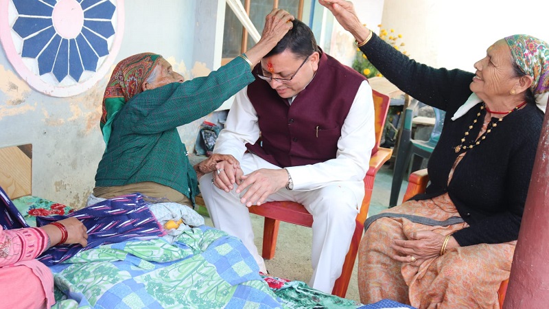 कार्यक्रम के पश्चात मुख्यमंत्री ने नगला तराई स्वर्गीय धन सिंह के आवास पहुंचकर लगभग 90 वर्षीय बूढ़ी आमा नन्दा देवी का हालचाल जाना तथा आशीर्वाद लिया।