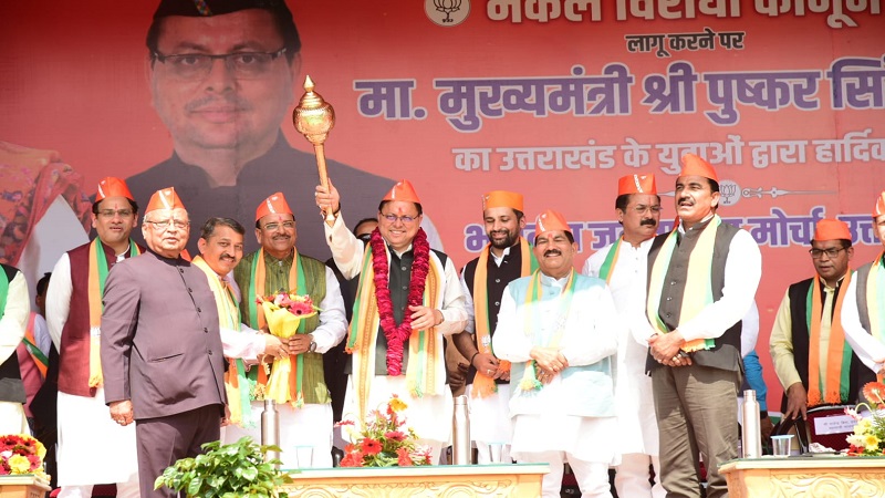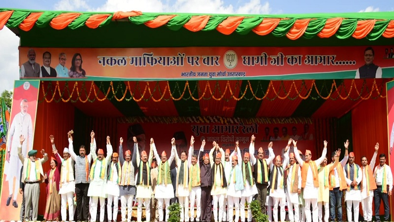हल्द्वानी/देहरादून, खबर न्यू इंडिया (न्यूज़ डेस्क): मुख्यमंत्री पुष्कर सिंह धामी ने बुधवार को रामलीला मैदान, हल्द्वानी, में नकल विरोधी कानून लागू करने के उपलक्ष में भारतीय जनता युवा मोर्चा द्वारा आयोजित आभार रैली में प्रतिभाग कर जनसभा को संबोधित किया। मुख्यमंत्री पुष्कर सिंह धामी ने इस अवसर पर घोषणा की कि समूह ’ग’ की कोई भी परीक्षा चाहे वह लोक सेवा आयोग से बाहर की हो या लोक सेवा आयोग के द्वारा कराई जा रही हो। सभी परीक्षाओं में साक्षात्कार की व्यवस्था तत्काल प्रभाव से समाप्त कर दी जाय। इसमें तकनीकी और गैर तकनीकी पद भी सम्मिलित होंगे अर्थात् जेई जैसे तकनीकी पदों में भी साक्षात्कार की व्यवस्था पूर्ण रूप से समाप्त कर दी जाएगी। उच्च पदों में जहाँ साक्षात्कार आवश्यक हो, जैसे- पी०सी०एस० या अन्य उच्च पद वहां भी साक्षात्कार का प्रतिशत कुल अंकों के 10 प्रतिशत से ज्यादा नहीं रखा जाएगा। साक्षात्कार के अकों को भी पारदर्शी प्रक्रिया के तहत साक्षात्कार में किसी भी अभ्यर्थी को यदि 40 प्रतिशत से कम और 70 प्रतिशत से अधिक दिए जाते हैं तो साक्षात्कार लेने वाले व्यक्ति या बोर्ड को इसका स्पष्ट कारण बताना होगा।