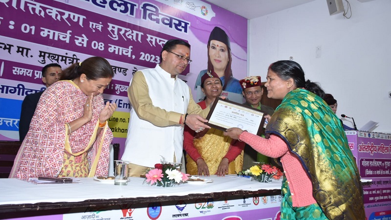 मुख्यमंत्री ने कहा कि हमारी डबल इंजन की सरकार द्वारा बनाई जाने वाली नीतियों में महिलाएं हमेशा प्राथमिकता पर रही हैं। प्रधानमंत्री द्वारा उज्ज्वला योजना चलाई जा रही है, इसी कड़ी में राज्य सरकार द्वारा प्रदेश के 01 लाख 76 हजार अंत्योदय कार्डधारकों को साल में तीन गैस सिलिण्डर मुफ्त दिये जा रहे हैं। राज्य सरकार प्रधानमंत्री जी द्वारा दिए गए मंत्र ‘बेटी बचाओ, बेटी पढ़ाओ‘ को लेकर समाज में सकारात्मक परिवर्तन लाने का प्रयास कर रही है। हमारी बेटियां हर क्षेत्र में आगे बढ़ें, देश का नाम रोशन करें, यह हम सबका दायित्व है। पर्वतीय क्षेत्रों में महिलाओं की राह को आसान करने के लिए सरकार ‘जल जीवन मिशन‘ योजना पर तेजी से काम कर रही है। हमारा लक्ष्य 2025 तक उत्तराखण्ड को देश के अग्रणी राज्यों की श्रेणी में शामिल करना है। इस लक्ष्य की प्राप्ति के लिए राज्य सरकार को मातृ शक्ति का आशीर्वाद एवं समर्थन चाहिए।