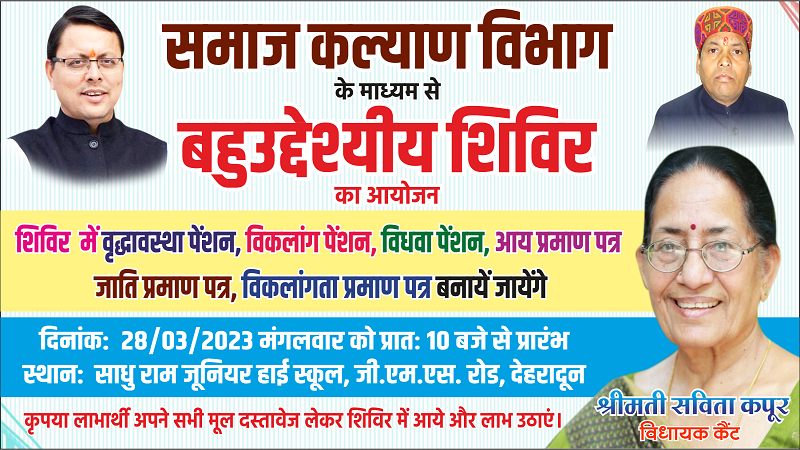 कैंट विधानसभा में 28 मार्च को बहुउद्देश्यीय शिविर का आयोजन, शिविर से मिलेगा जरूरतमंदों को लाभ : सविता कपूर