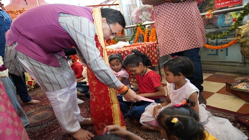 सीएम धामी ने माँ डाट काली मन्दिर में सपरिवार पूजा-अर्चना कर कन्या पूजन भी किया