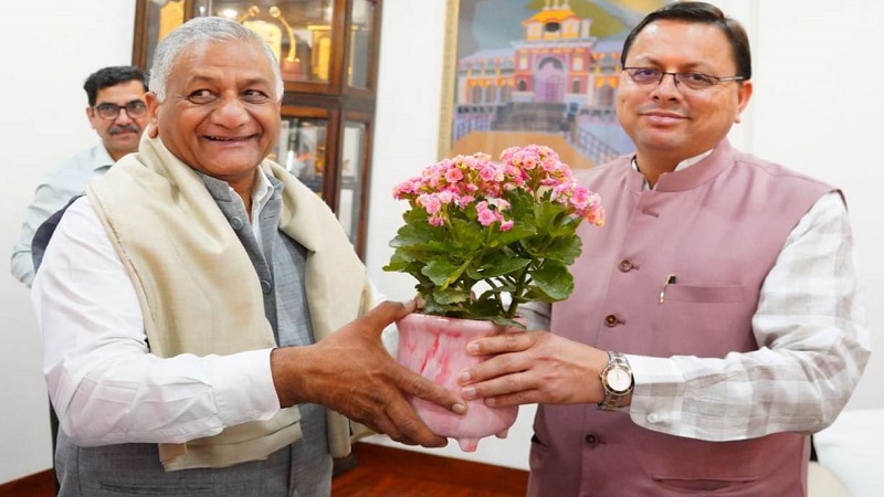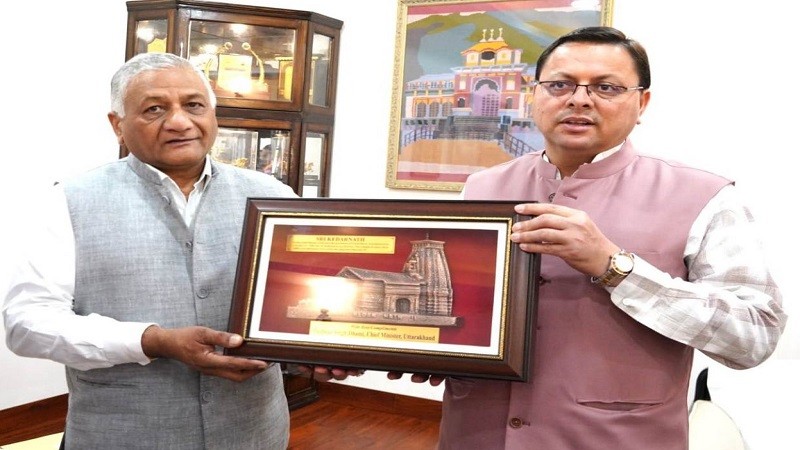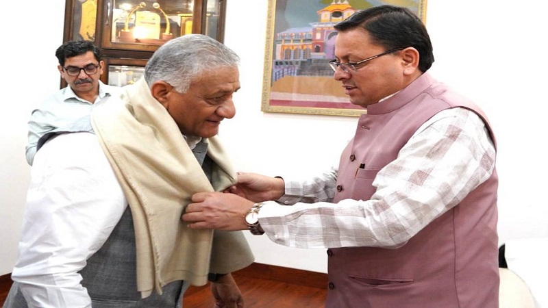 सीएम धामी से मिले केंद्रीय राज्यमंत्री जनरल वी.के. सिंह , कई मुद्दों पर हुई चर्चा