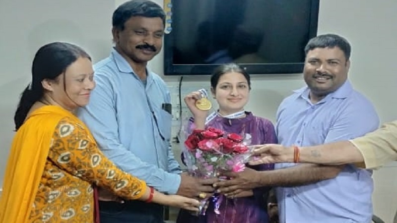 अनिका शर्मा को स्वर्ण पदक मिलने पर किया गया सम्मानित